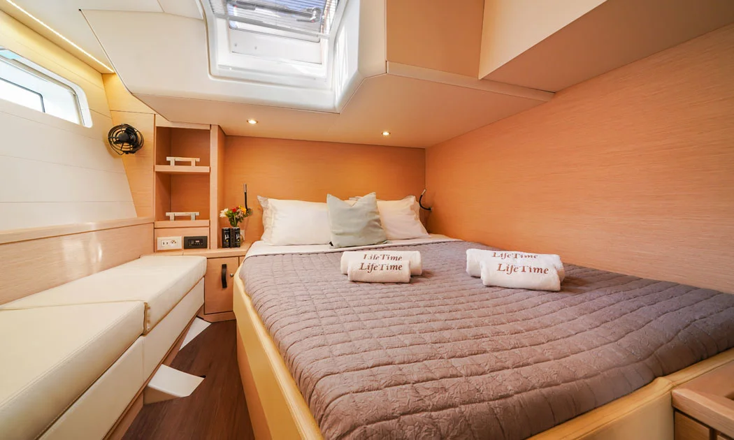S/Y LIFE TIME is the ideal choice for a comfortable and luxurious sailing vacation. With room for up to 8 people in 3 double cabins and 1 twin cabin, all with en-suite bathrooms.