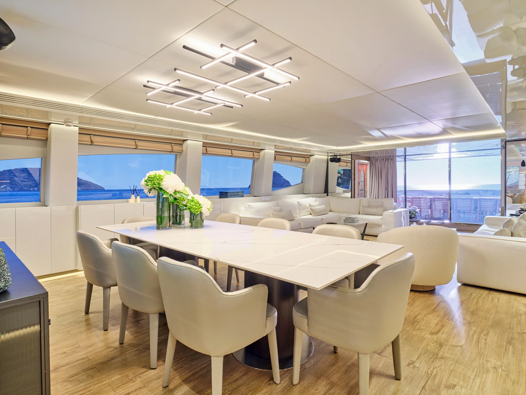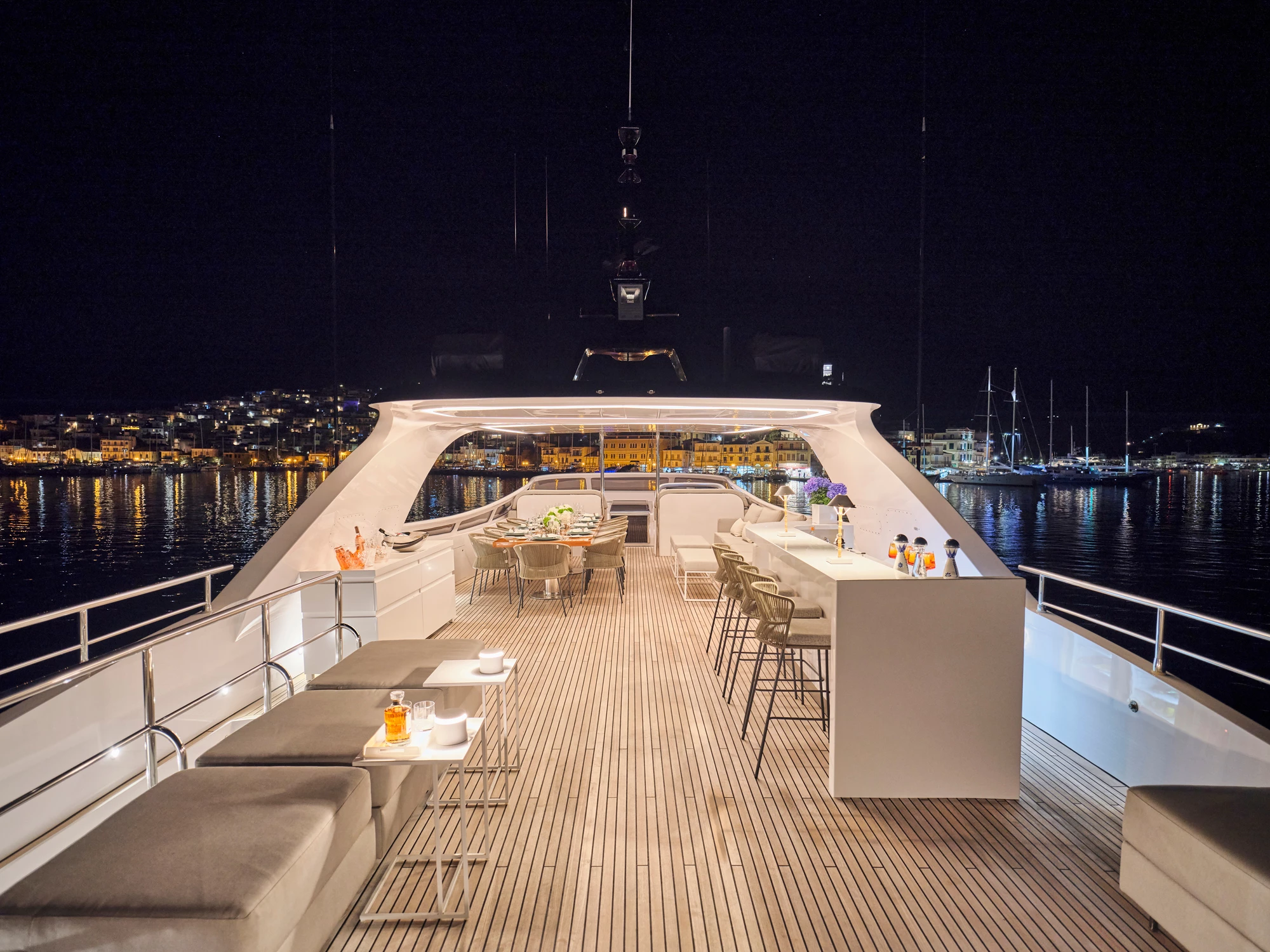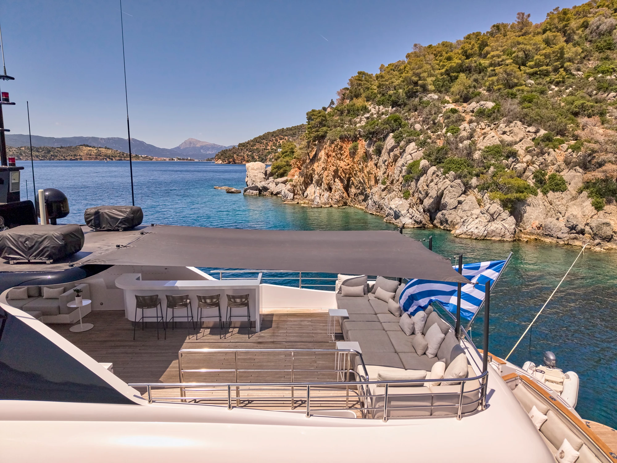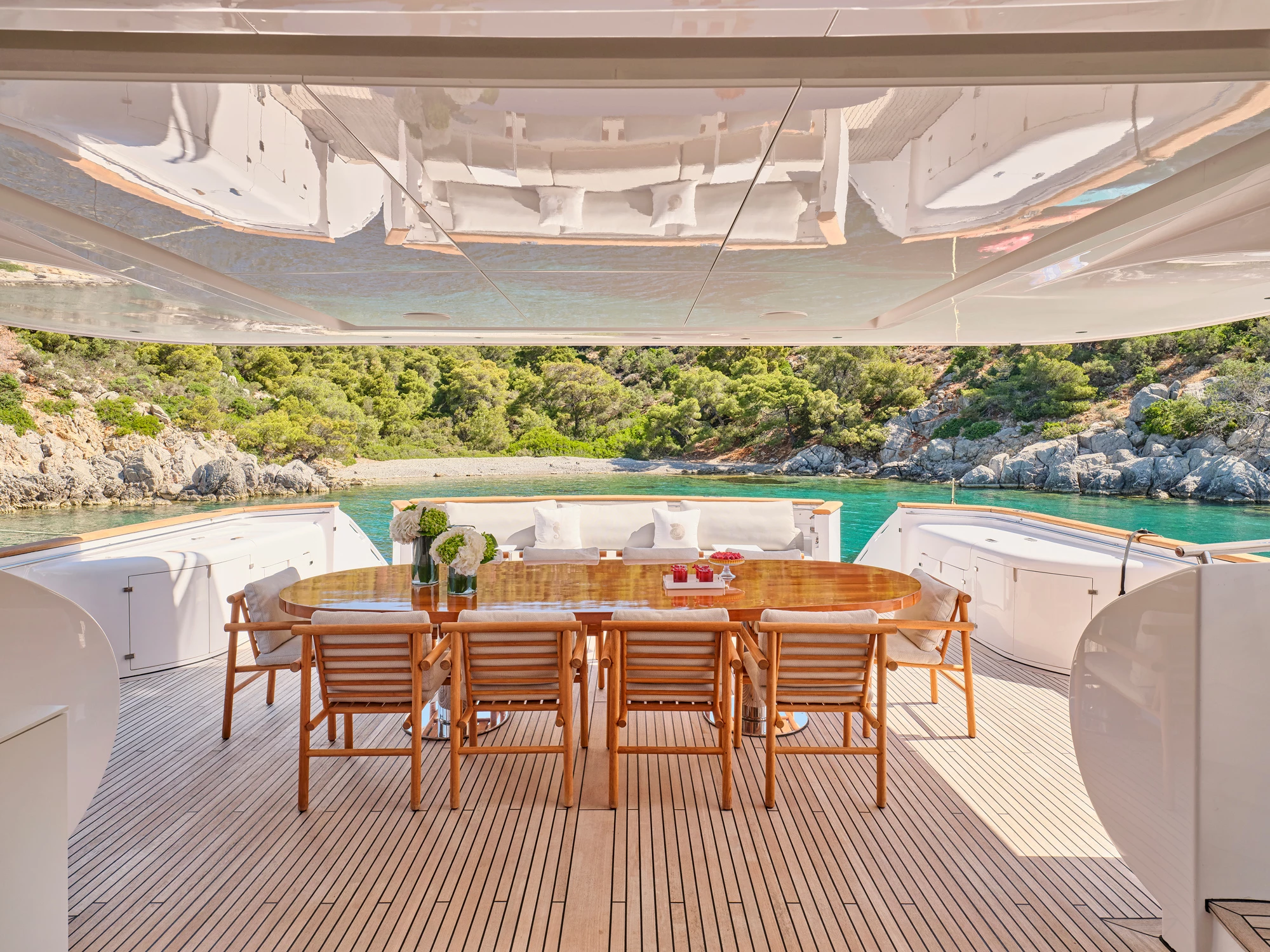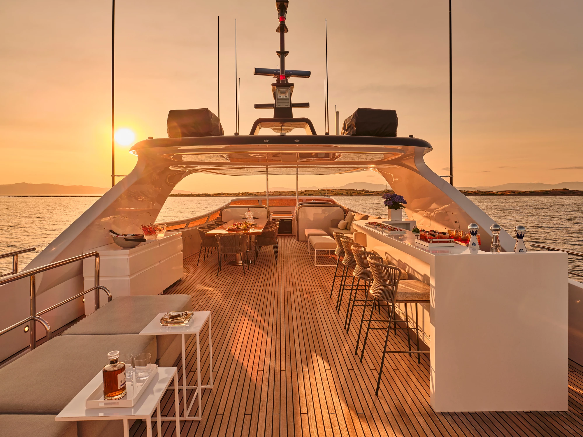 Guests can savour their time on board in a variety of outdoor settings. The sundeck, in particular, is a highlight with its wet bar, extensive sunbathing areas, and multiple al fresco dining options. Combined with a cruising speed of 16 knots and a wide array of water toys, MAMMA MIA offers something for everyone, from the adventure lover to the sun-seeker