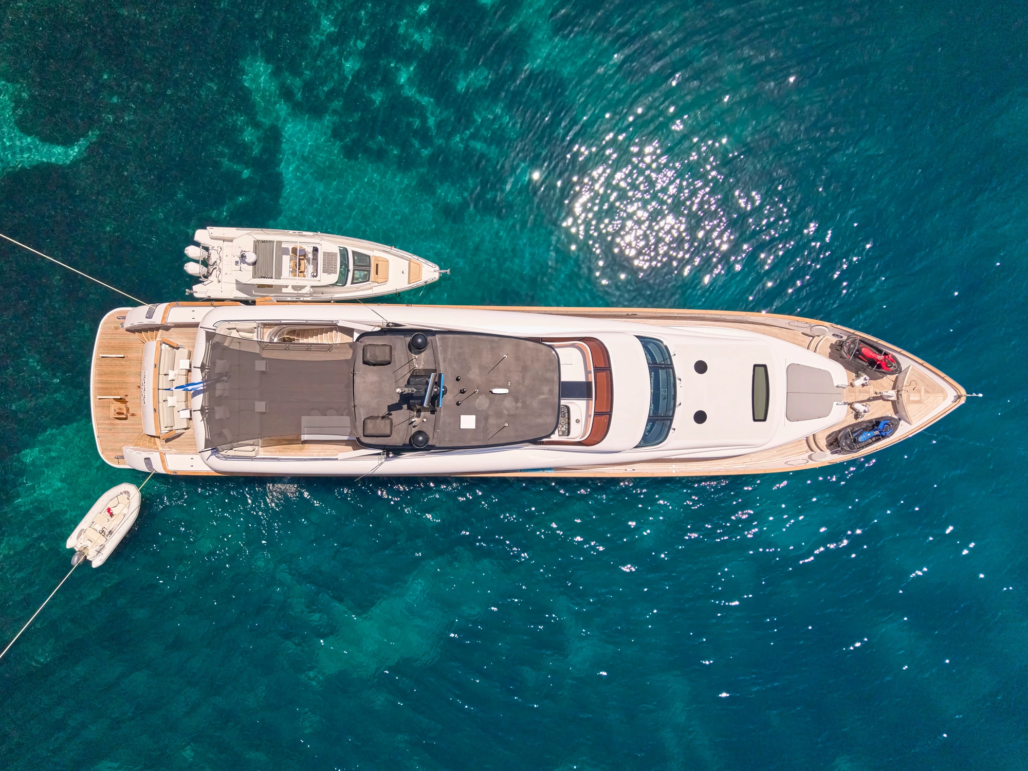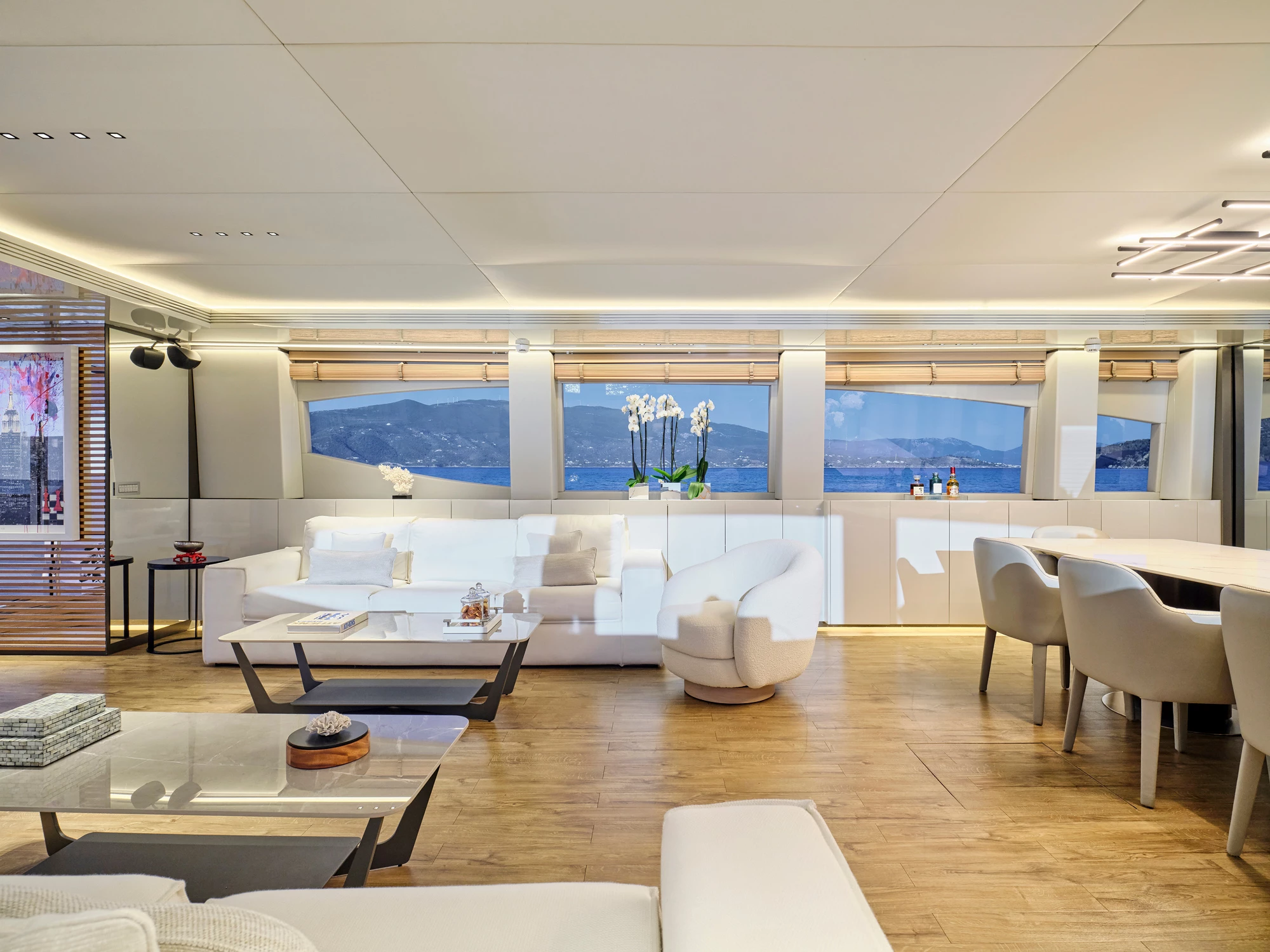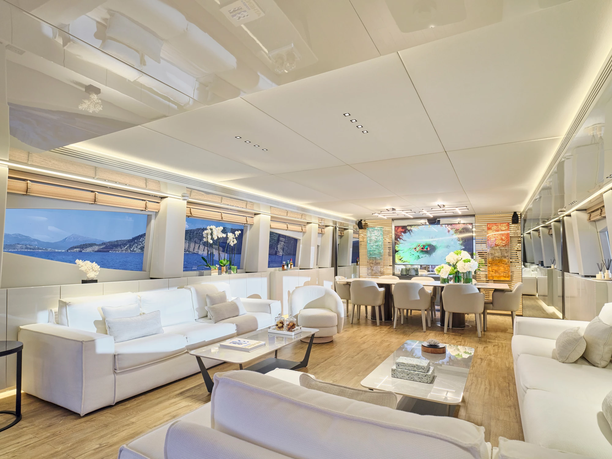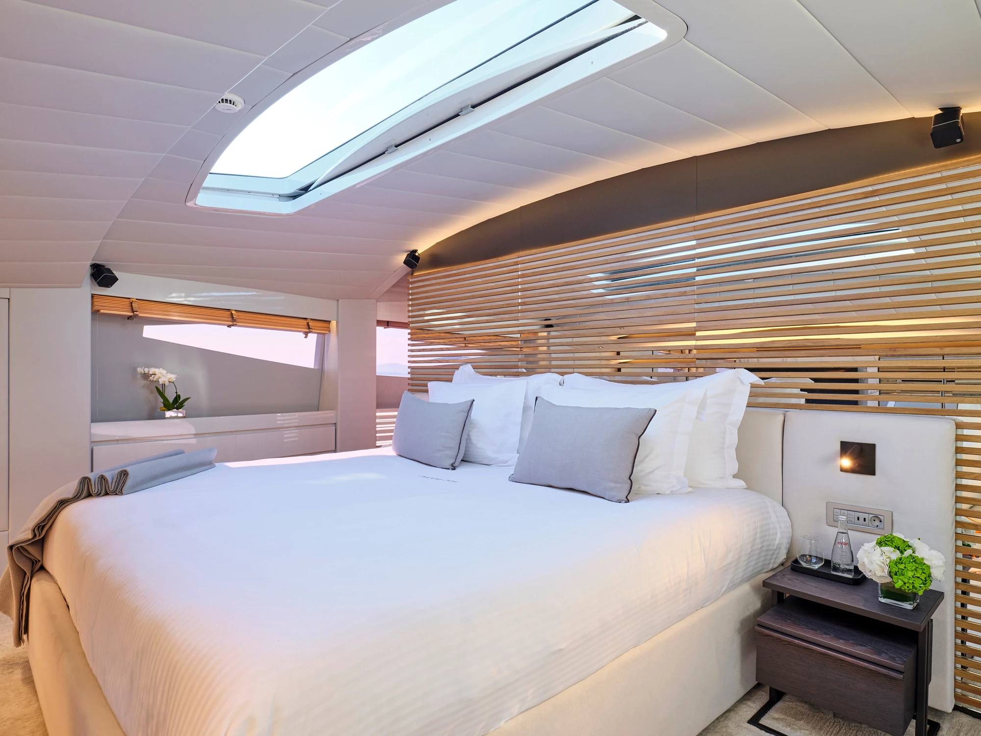Guests can savour their time on board in a variety of outdoor settings. The sundeck, in particular, is a highlight with its wet bar, extensive sunbathing areas, and multiple al fresco dining options. Combined with a cruising speed of 16 knots and a wide array of water toys, MAMMA MIA offers something for everyone, from the adventure lover to the sun-seeker