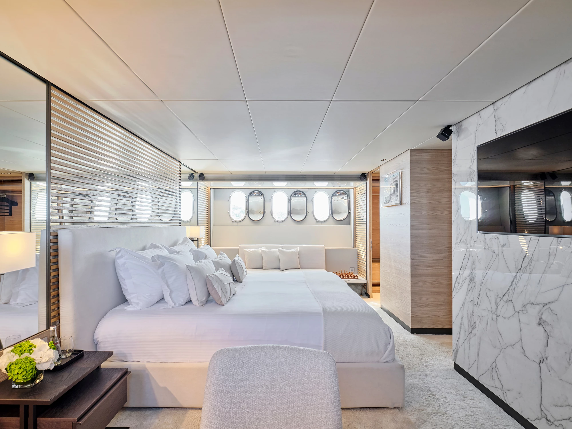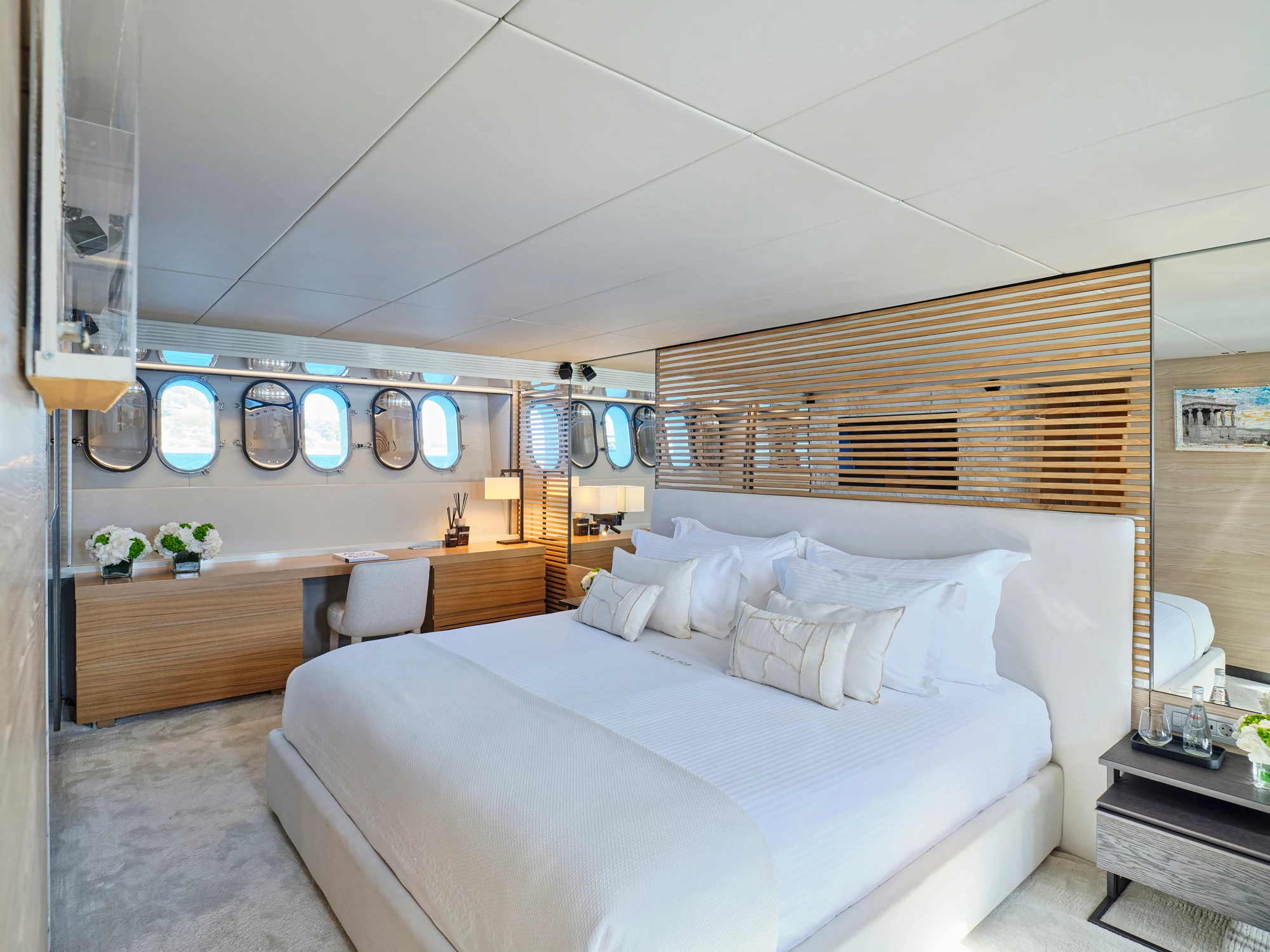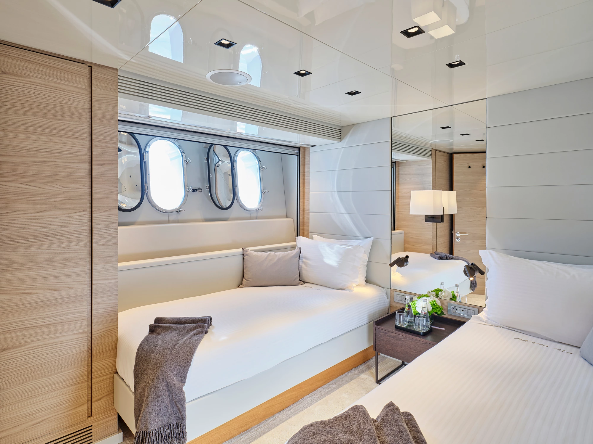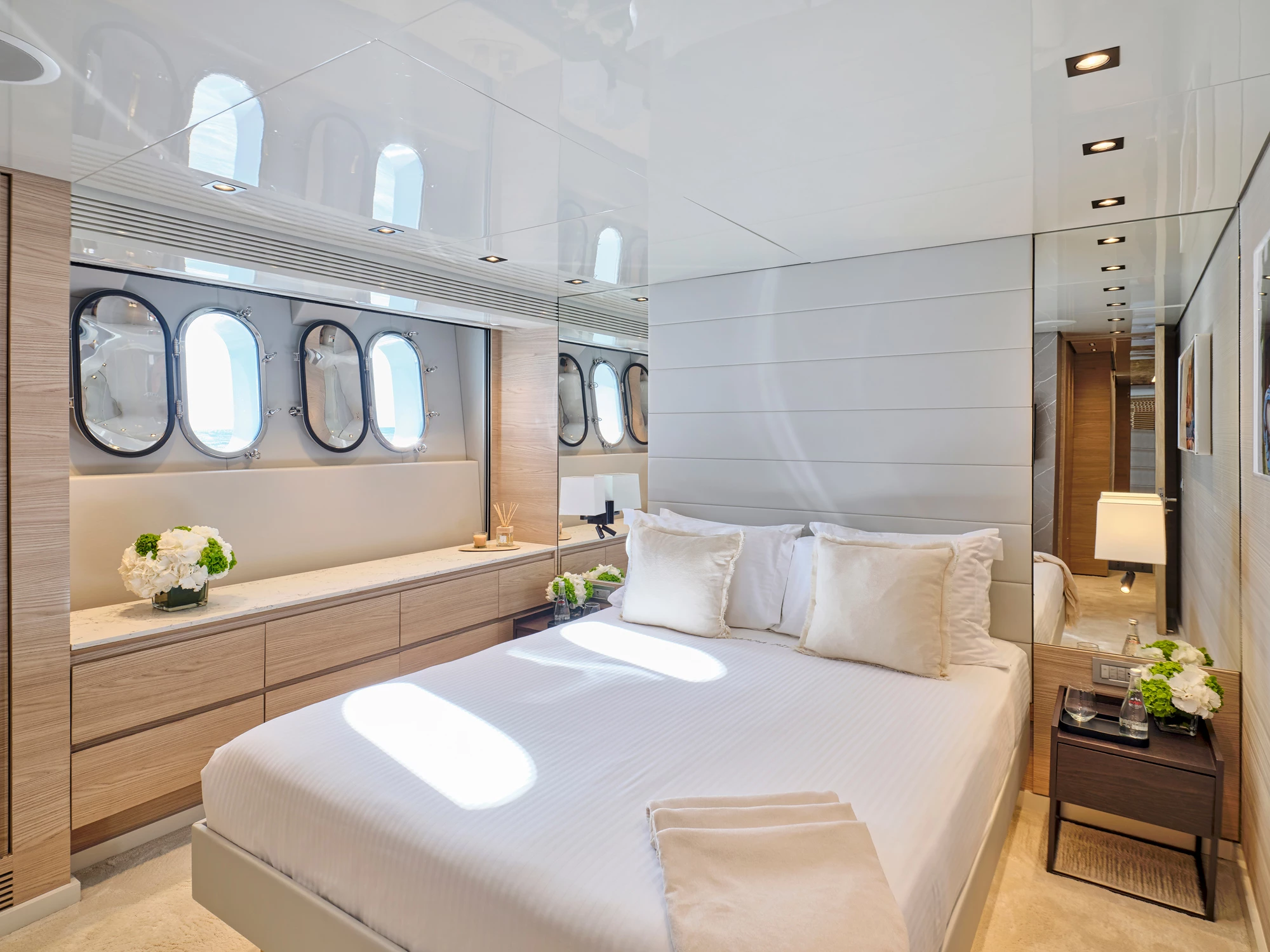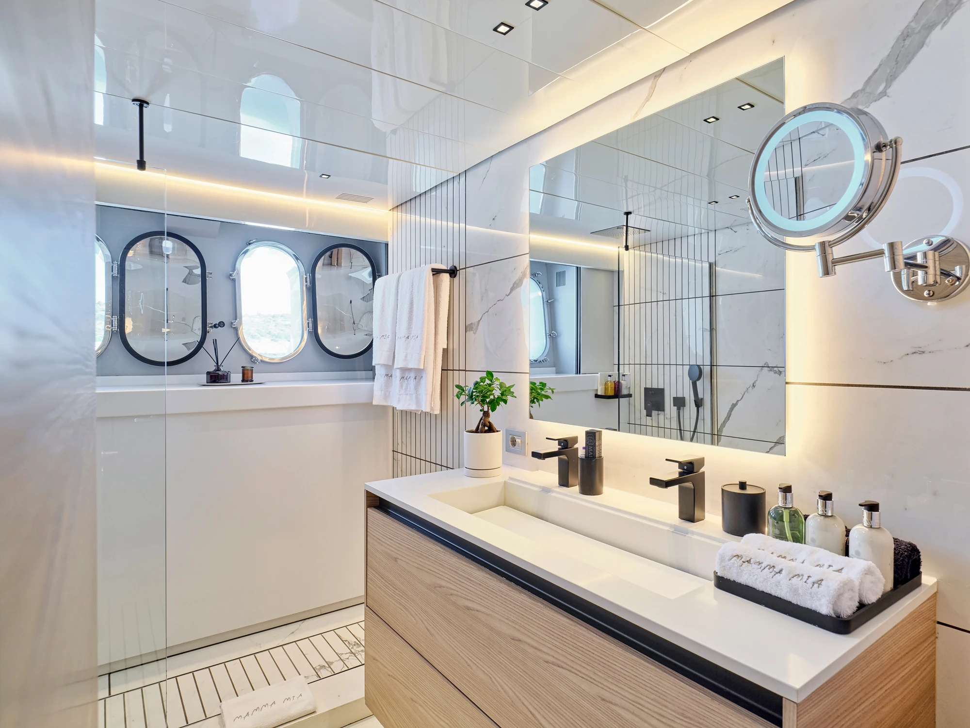 MAMMA MIA offers generous accommodation for 12 guests, featuring a full-beam Master Suite on the main deck, an opulent VIP suite, two well-appointed double staterooms, and two twins, each with a Pullman berth. Each stateroom comes equipped with ensuite facilities and high-end amenities, ensuring that all guests experience the utmost comfort during their stay.